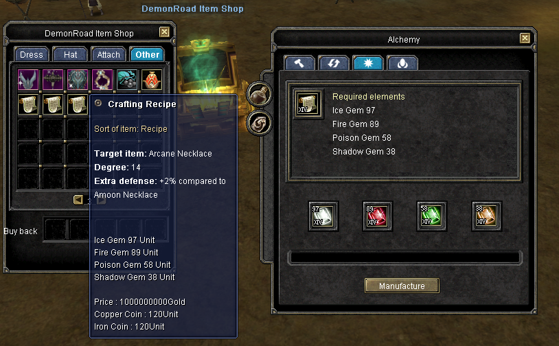 Your main goal is to collect as many Gems as possible, as they are the key to crafting the most powerful accessory set — the Arcane Accessory. You can purchase the recipe from the DemonRoad Box (south of Jangan) and craft it using the required Gems.