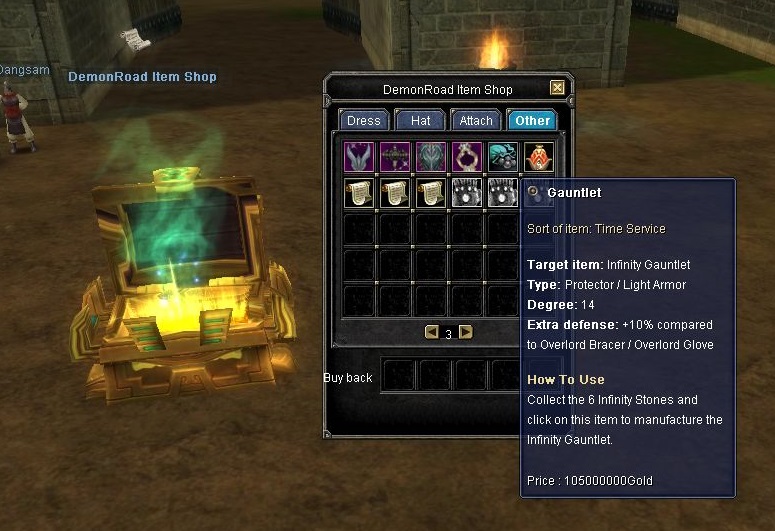 The raw Gauntlet is purchasable for gold from the DemonRoad NPC by anyone.