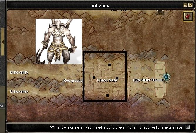 | Drops | D14 Immortal, Berserker potions, Blue stat upgrade scroll (Accessory, Armor, Weapon, Devil / Angel Spirit), DemonRoad D,E type weapons, Sealed Powder (Class I) |